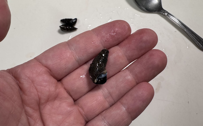 先端を折ったウミニナ(提供:茸本朗)その味は海のような香りに、強い風味と濃厚な旨みがありクセになります。芋焼酎などの風味の強い酒との相性は抜群です。
