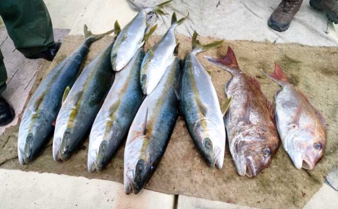 4月9日、佐賀県唐津市肥前町大浦浜港から栄丸が宇久島の五目釣りに出船。同船初乗船の大江さんがヤズにマダイ、アコウ、ボッコなど魚種多彩にキャッチ。「次のチャンスでヒラマサ狙いのジギングにチャレンジしたいです」とのこと。5月上旬から夜焚きイカ釣り、アジ釣りに出船。