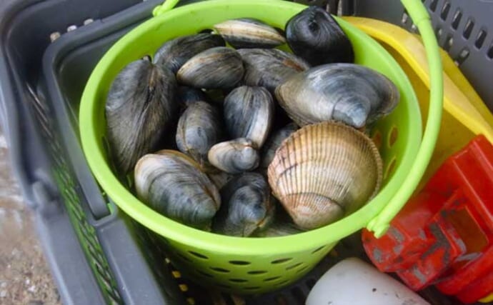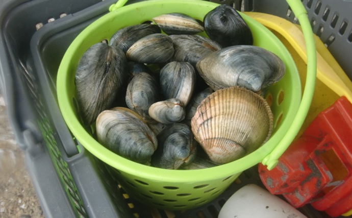 干潟で熊手をザクザクガリガリやり、アサリ本命の潮干狩りをしていると、本命以外の貝も見つかります。シオフキやカガミ貝を見つけた時はカワハギ釣りでトラギスを釣った時如くポイっとしてしまいますが、ホンビノスガイ、サルボウガイを見つけた時は結構嬉しかったりします。