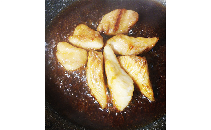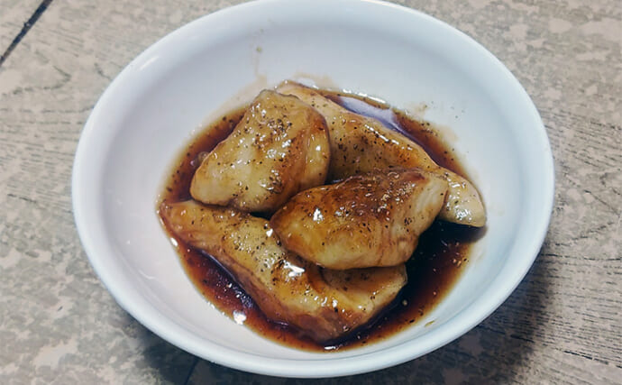 すぐにとろみが付くので、焦がさないよう注意。最後に粉山椒をふりかければ完成だ。しっかりとした旨みとピリッと香る山椒が、ご飯にも酒にも抜群に合う。大チヌを釣ったら、ぜひ試してみてほしい。