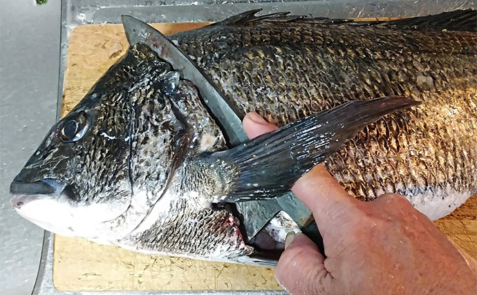 頭とワタを取る(提供:TSURINEWSライター・松田正記)チヌの3枚おろし