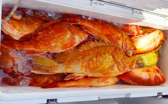福岡県から沖釣り最新釣果情報が入った。根魚狙いで大型ボッコ主体にヒットしクーラー満タンの好土産をゲット。五目釣りでも多彩な魚で十分な数を確保している。