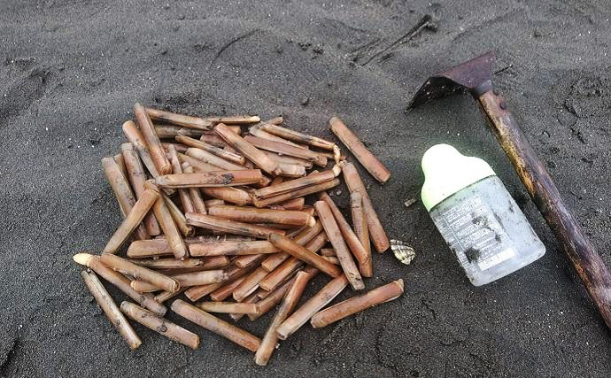 「ライバルが少ない日に目一杯採るぞ」と意気込んでも、マテガイ捕りに関しては、雨の日は避けた方が良いかもしれません。何故ならマテガイ捕りは「掘る作業」に加え「巣穴に塩をかける作業」が加わるからです。