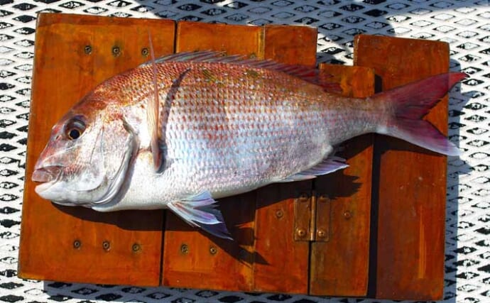 乗っ込みマダイを狙う(提供:TSURINEWSライター丸山明)ただし、これも4月下旬にかけて上昇して、平年に追いつく見込みだそうで、5月も乗っ込みが続いていくことでしょう。確かに、釣ったマダイのタマゴは小さくとてもとても成熟している様子はありません。すると、暫くは産卵前の喰いが、持続されるのではないかの期待です。