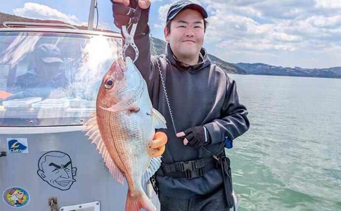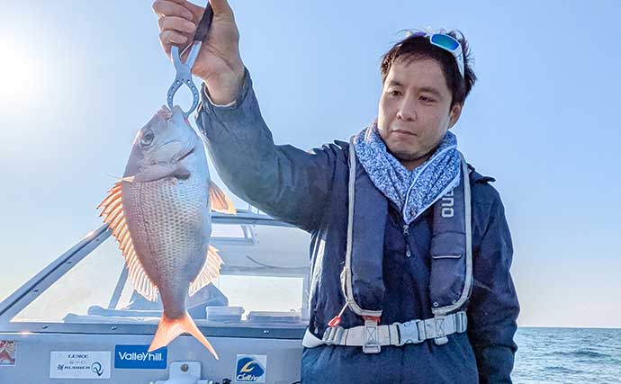 初挑戦であっさりマダイをゲット(提供:週刊つりニュース中部版APC・原田順司)潮流が激変する海