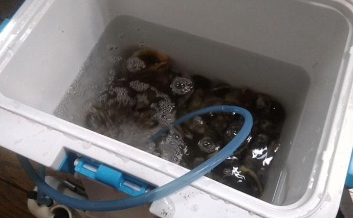 エアーポンプは安価なものでOK(提供:TSURINEWSライター・尾崎大祐)塩抜きで旨味UP