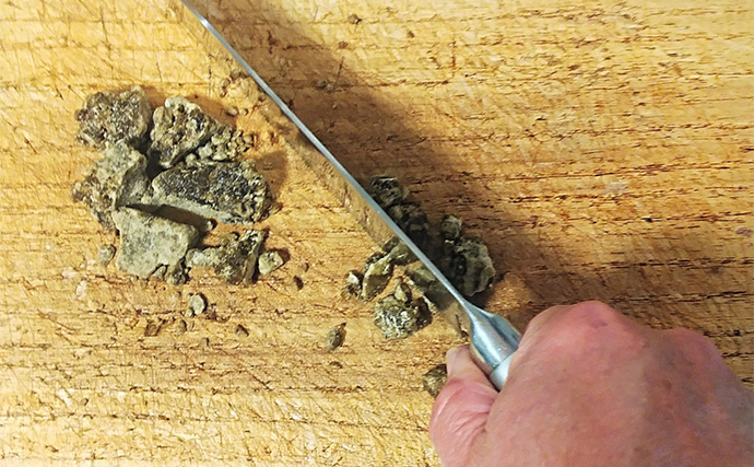 黒糖を細かくしておく(提供:TSURINEWSライター・松田正記)煮付け