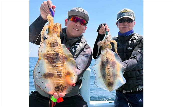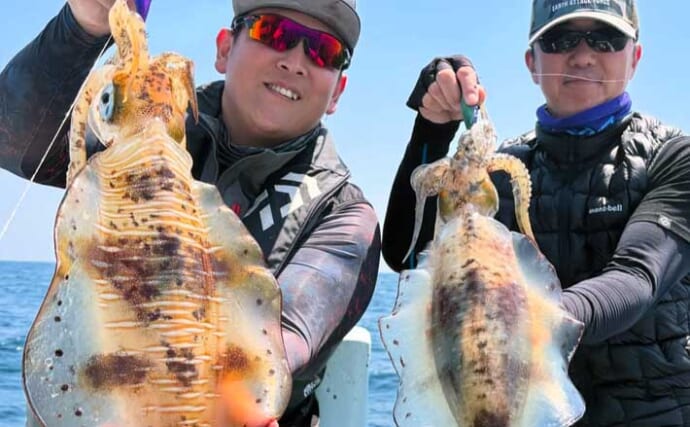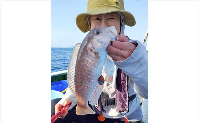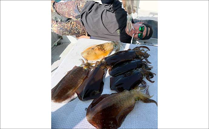三重県・南伊勢町神津佐出船の名古丸では22日にティップランで2.5kg頭に9匹のアオリイカが浮上、うち3匹が2kgアップ。また、21日はタイラバ初挑戦の人が、本命マダイのほか、良型のアマダイやアオハタなど多彩な魚をゲット。