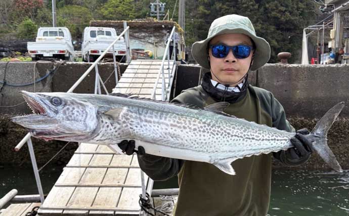 三重県鳥羽市にある石鏡漁港出船のはっしぃ丸では18日、キャスティングで101cm頭にサワラ6匹とワラサが上がった。同船ではタイラバも出船中で30〜50cmのマダイが釣れている。
