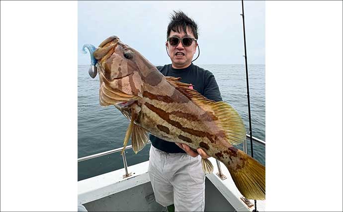三重県志摩市の浜島から出船しているフィッシングビレッジりなちゃんでは、20日にジギングでハチビキ10匹のほか、スイミングテンヤで良型のホウキハタやオオモンハタが上がった。12日には同店のレンタルボートを利用した人が3.3kg頭にアオリイカ12匹と強烈な釣果を上げた。