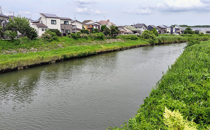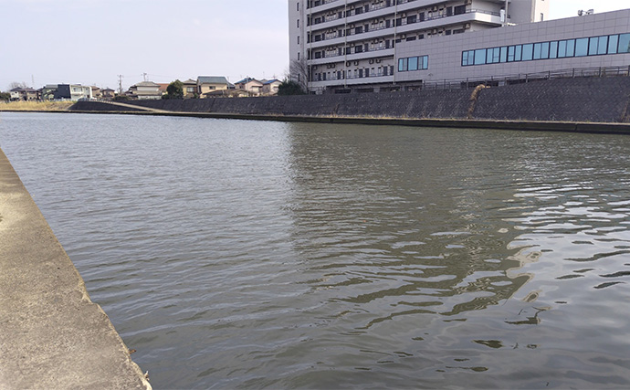 上流域を釣り歩く(提供:TSURINEWSライター・宮坂剛志)さっそく橋脚周りや地形変化などを一通り探ったが、今日はとにかく風が強い。暴風に近い荒れようで、例えバイブレーションでも投げにくい。さらに、流れと風がぶつかり合って水が動かない状態なので、より水が動く排水溝付近へやってきた。