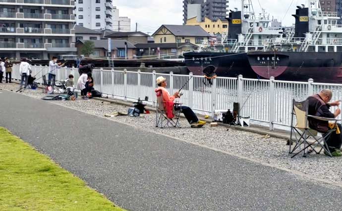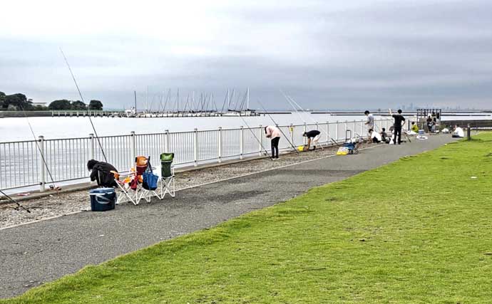 子供連れでも安心(提供:週刊つりニュース関東版APC・澤田朝寛)竿は磯竿など長めで、仕掛けは、ナス型オモリ、まきエサ袋(カゴ)、市販のサビキ仕掛け。仕掛けは、時期や対象魚によって、アタリの出方に違いがあるので、予備を含めて数種類用意すると安心。