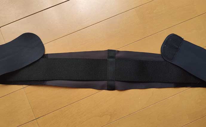 何それって思うだろうが、実はコルセットのような大げさなものではない。主に、腰にかかる負荷を軽減する役目がある腰ベルトだ。筆者は釣りに行くと何時間も立ち続けてルアーを投げるので、腰には気を使っている。なので、これが欠かせない。