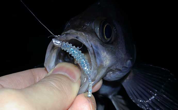 夜のメバルは表層の魚で、イメージとしては、本当に「海面直下」についている。0.2gのジグヘッドでふわ釣りしていないと釣れない日もあるのだから、まさしくド表層の魚ということができるだろう。筆者の知る限り、ここまでボトムを巣とする根魚でありながら、夜になるとうかうかと浮いてくる魚はほかにいない。