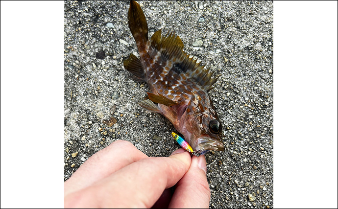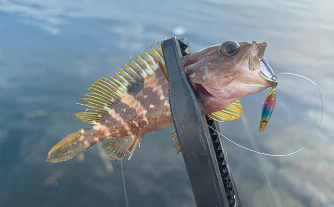 メタルジグにカワハギ(提供:TSURINEWSライター・井上海生)アイナメやクジメなどの底物も冬になると混じる。ただこのあたりの魚を狙うとライトゲームでは外しにくい根がかりがつきものなので、あまりのめりこまないほうがいいかもしれない。