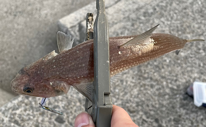 サプライズで釣れるエソ(提供:TSURINEWSライター・井上海生)エソは底物であり、ボトムにタイトな魚である。狙うためには、常に底を意識したい。メタルジグの巻きや、ワームのダーティングで誘うと効果的だ。日中の日のある時間でも狙えるので面白い魚である。