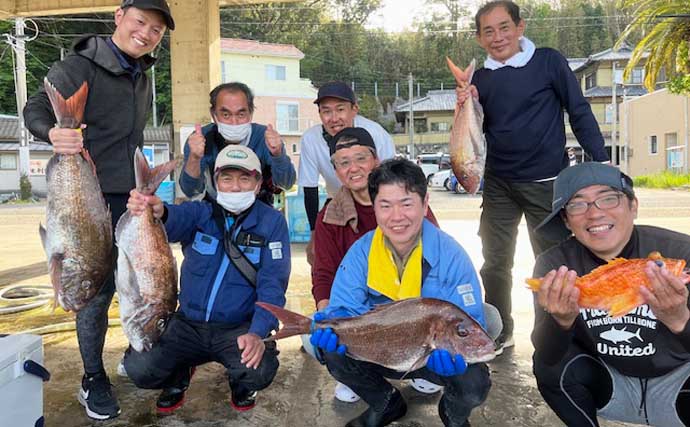 4月19日、佐賀県唐津市鎮西町串浦港から勇勝丸が壱岐周辺のタイ釣りへ西木さんグループを案内。川原さんがマダイ4.2kg、田原さんがマダイ3.5kgを、別グループの増田さんがマダイ4.2kgを釣り上げた。釣り大会のマダイの部は20位が3.5kgアップでエントリー中。5月10日から夜焚きイカ釣りの募集を開始。
