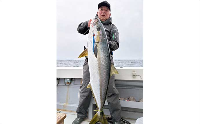 大型ヒラマサ手中(提供:幸漁丸)<週刊つりニュース西部版 編集部/TSURINEWS編>