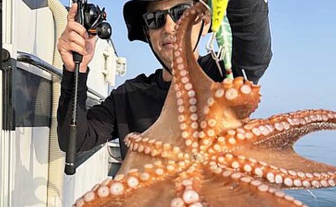 熊本県玉名市の新川漁港から出船中の海人丸は島原沖にマダコ釣りで出船中。大型交え数釣れる日もあり今後も期待大だ。マダコ釣りは小潮回りで出船。タチウオ釣りやタイラバも出船中。
