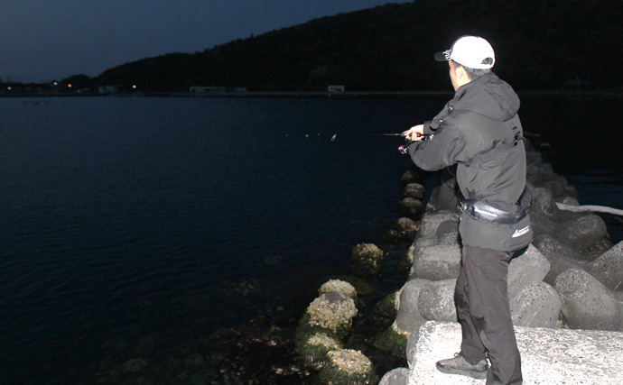 メバルは大規模な港湾から小さな漁港、磯などさまざまな場所で狙えるが、今回は水深があり潮通しの良い堤防と、常夜灯が絡んだ定番的な小規模漁港。それぞれ時間帯を分けて釣りに臨んだ。