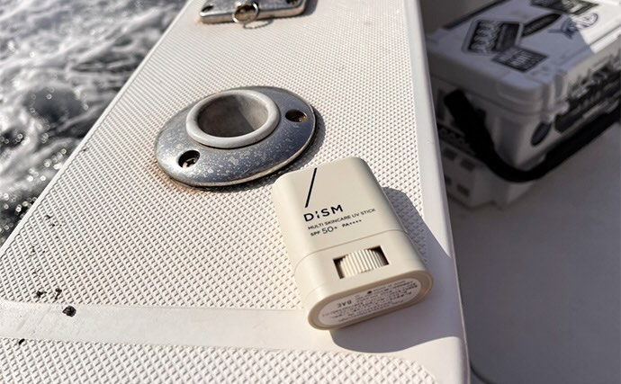 日焼け止めには、「クリームタイプ」「スプレータイプ」などがあるが、釣りシーンにおいてはサッと塗ってべた付かず、携帯性にも富む「ディズム マルチスキンケアUVスティック」のようなスティックタイプのものがおススメだ。