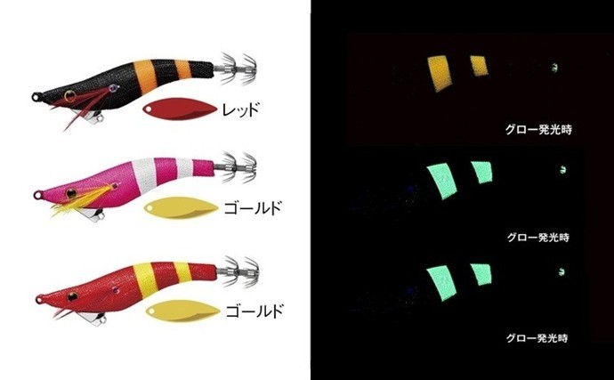 サイズは3インチと4インチ。カラーはキンギンラメ(UV)、伊予柑ゴールド(UV)、サクラサク(UV)、瀬戸内ライムグロー、デイライトブルー(UV)、チャートグロー。
