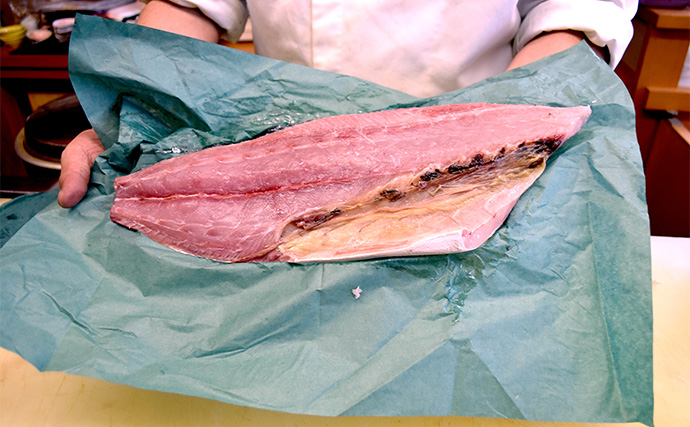 魚を2枚におろした様子(提供:週刊つりニュース中部版編集部・牧田)部位ごとにグリーンパーチで包む。