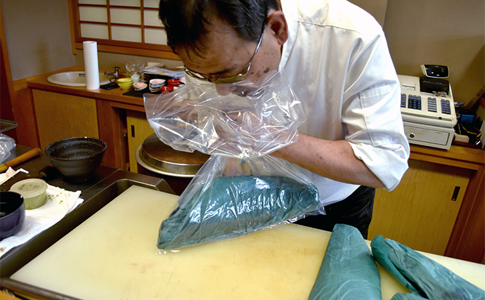 たとえばラップで包んで保存するのであれば、魚の表面にドリップが溜まるため、こまめに拭き取るなど管理をしないと生臭さや劣化の原因となる。我々のように常に食材と向き合う職人であれば、そのコントロールが可能だが、一般にはおすすめできない。