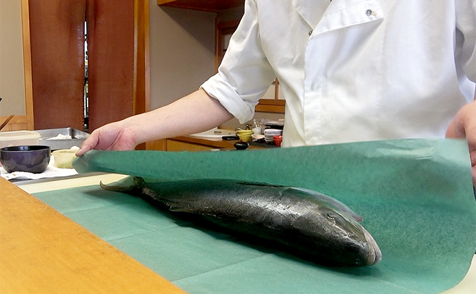 魚1本を丸ごと包む(提供:週刊つりニュース中部版編集部・牧田)魚が大きい場合:2枚におろす