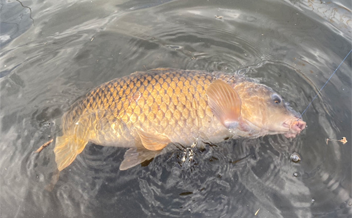 ナマズが釣れた後も鯉の反応は依然として高く、最後までパンに反応を示してくれました。1匹釣れた後は大抵他の鯉たちは警戒心が上がりますが、全体的に活性が高かったこともあり釣れた後でも反応がなくなることはありませんでした。最終釣果はナマズも含め4匹と、満足いく結果で終わりました。