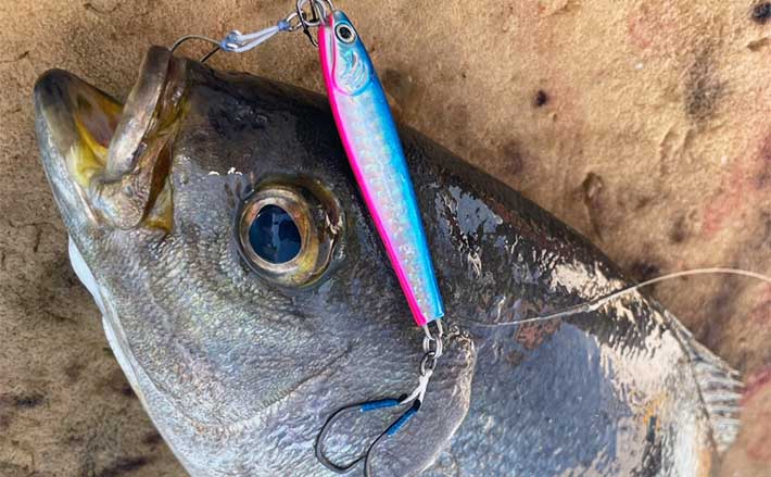 エサ釣りのイメージが強いイサキだが、梅雨頃にイワシ等のベイトフィッシュを捕食しているものをジグで狙う。ただたくさん釣るという点だけで見ればエサ釣りで狙った方が確実に数は伸びる。
