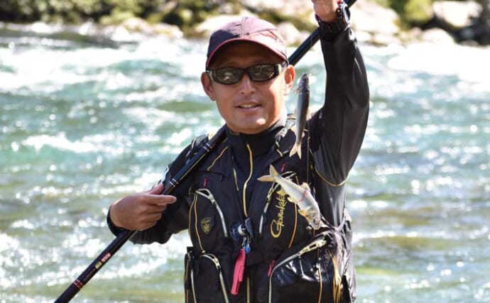 好釣果を狙おう(提供:週刊つりニュース中部版 渡邉敦)トモ釣りは循環の釣りと言われる。釣れたアユをオトリにするのだが、釣れたばかりのアユは元気が良く、次の1匹を釣るには最適。オトリをローテーションしていく、循環の釣りなのだ。