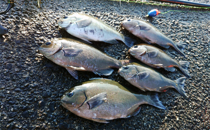 グレ6匹と釣果は上々(提供:TSURINEWSライター・稲垣順也)3日目はウキ釣りでアオリ狙い