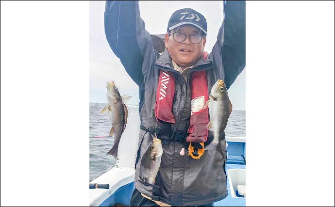 筆者のイサキ3点掛け(提供:週刊つりニュース関東版APC・間宮隆)多彩なゲストに恵まれる