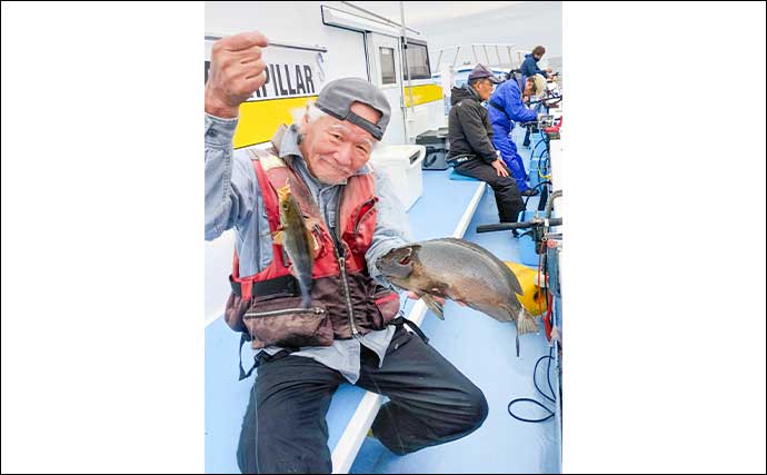西川さんはマダイを手中(提供:週刊つりニュース関東版APC・間宮隆)最終釣果