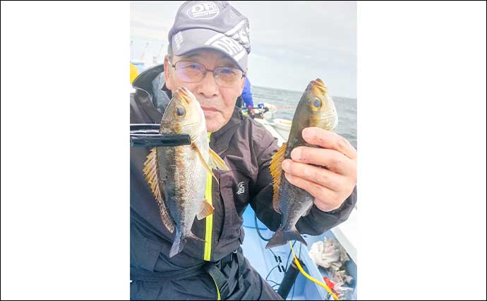 釣友の加藤さんに良型メジナ(提供:週刊つりニュース関東版APC・間宮隆)マダイも釣れる