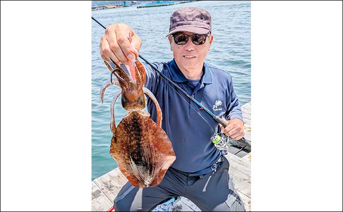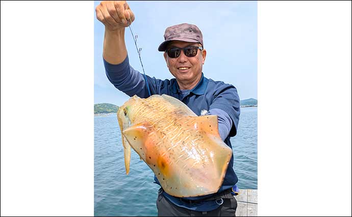 昼からの時合いでヒット(提供:週刊つりニュース中部版APC・山根充伸)1.08kgのアオリイカを手中