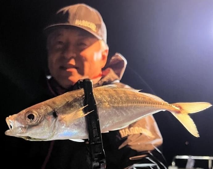 バチコンで良型アジ(提供:株式会社デュエル)遊漁船でのナイトゲームではバチコンがシーズン。5月28日にデュエルのソルトテスター・クルシマさんが長崎県北エリアの船で釣行した。