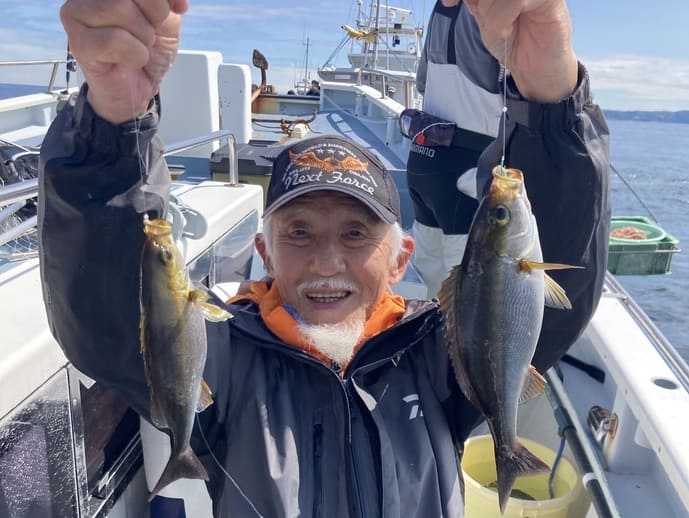 しかし、後半はパターン攻略し、本命アカムツのプチラッシュが訪れ、アベレージサイズ中心にコンスタントに釣れ上がった。特にゲストのタチウオは爆釣した他、カサゴやカレイはジャンボサイズがよく交じり、嬉しいお土産確保となった。