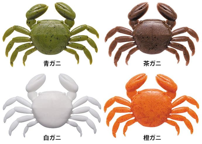 同商品は「パワーイソメ」の素材を使用し、カニを模したリアルなフォルムに仕上げられている。高集魚&高摂餌性を備えており、カニをエサとして釣ることが多い魚、主に根魚狙いの釣りに高い効果を発揮する。