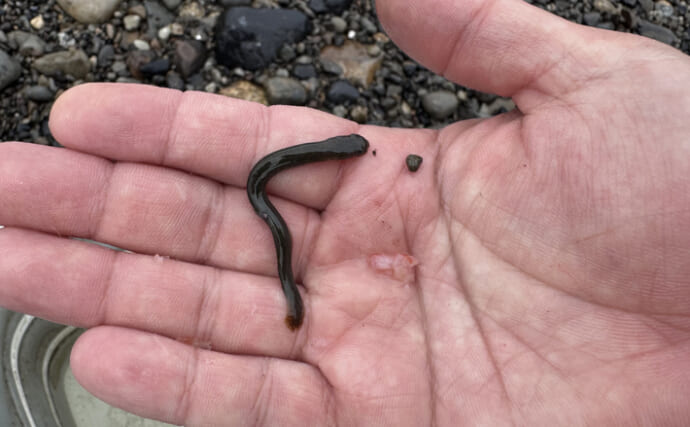 上記の伝承から、富山県では昔から子どもたちが遊びでミミズハゼを捕まえる文化がありました。その捕り方もまたユニークで、手の中に彼らの餌となる魚の切り身のかけらなどを握り込み、拳を浜の中に潜り込ませるのです。