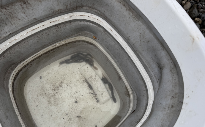 砂利の中でも泳ぐことができるミミズハゼは、握り拳の中にでも容易に潜り込むことができます。餌を求めてミミズハゼが潜り込んできたら水からあげれば一丁あがり。
