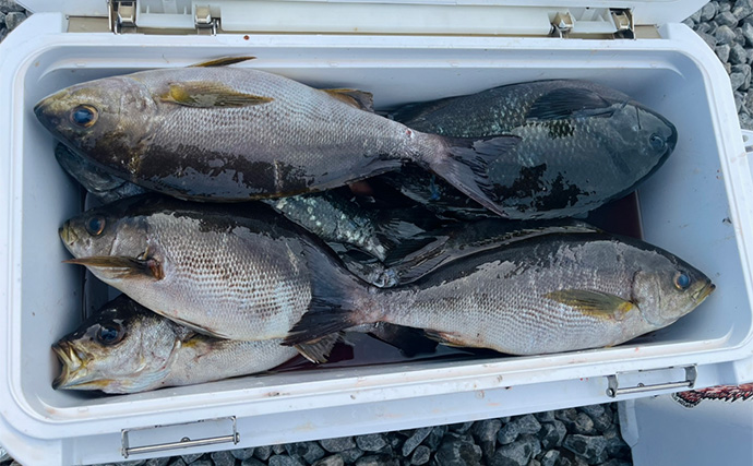 当日はイサキが好調だった(提供:TSURINEWSライター・藤本みどり)気付けば、クーラーの中はお土産のイサキで満タン。季節のお魚を待っている方の満足そうな顔が浮かびます(笑)。
