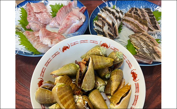 最終釣果(提供:TSURINEWSライター・藤本みどり)民宿でイサキに舌鼓