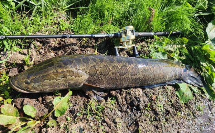 70cmのライギョ(提供:週刊つりニュース関東版 黒田初)流れ込みでナマズ2キャッチ