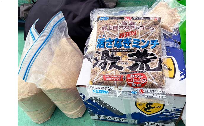 使用したエサ(提供:TSURINEWSライターかにおけ)練り上がったダンゴを5、6発空打ちをしてから本格投入、どんどんいきます。