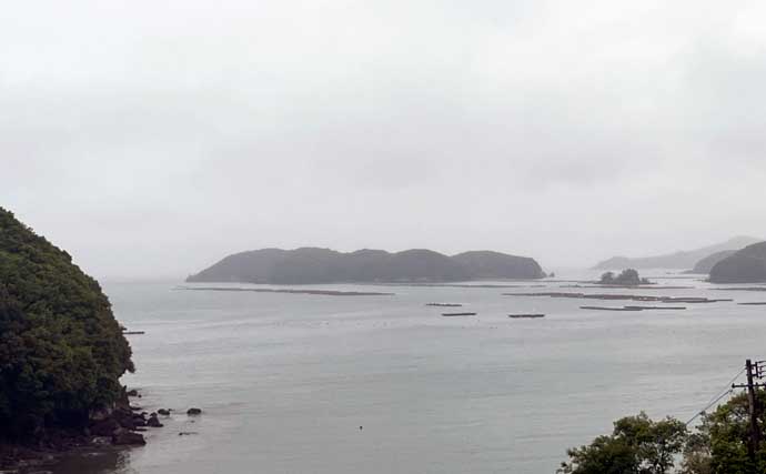 雨模様の鳥羽(提供:TSURINEWSライターかにおけ)そうこうしてるうちに着ている服もベチャっと。濡れるのはダンゴだけではないことに気付きます。