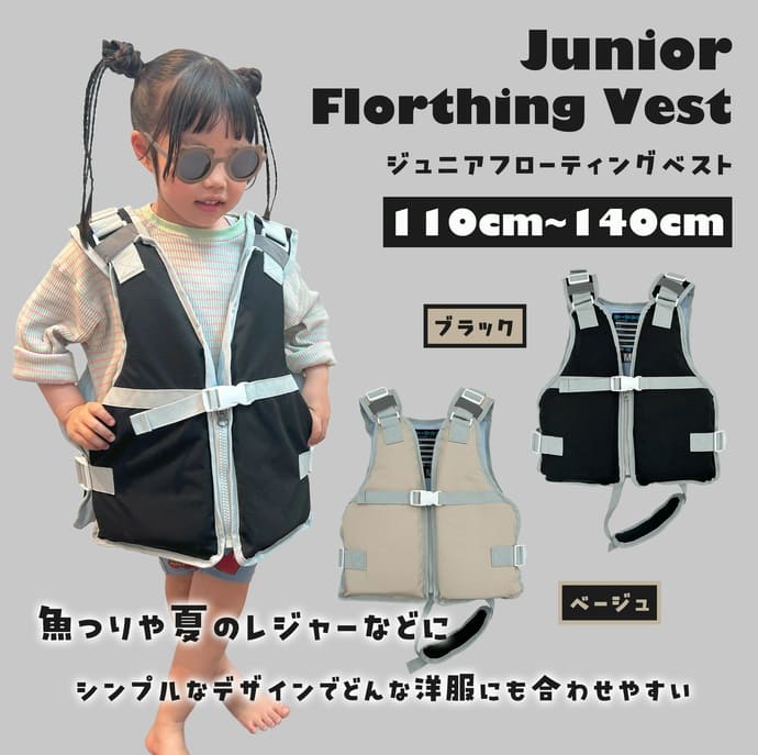 ルナヒサノ(株式会社ヒサノ)から、海・川・水遊び・魚釣りを安全に楽しむための子ども用ライフジャケット「ジュニアフローティングベストDX」が登場。シンプルなデザインはどんな洋服にも合わせやすく、カラーはベージュとブラックをラインアップ。