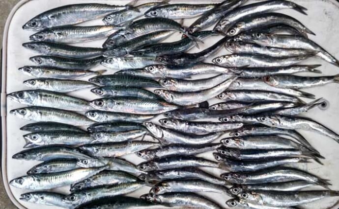 仕掛けの投入と、釣れた魚を外す作業を手早くすると、順調に数が伸びていく。途中、釣れない時間もあったが、群れが通ると連発するパターンが続き、1時間で50尾程度キープできた。