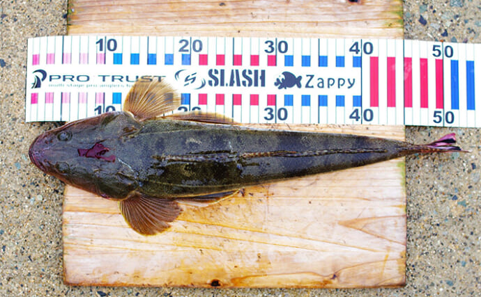 ボートで仕留めたマゴチ(提供:TSURINEWSライター・丸山明)メーカープロの動画もありますが、なかなかどうして釣れないこともありますし、数釣りができる魚とは違います。30回以上投げて1回アタリがあれば、という確率ながら、その期待感がたまらなく面白さを作り出します。
